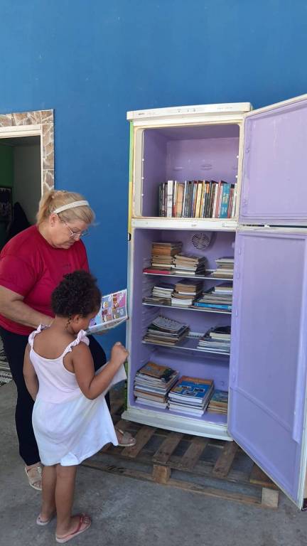 PARTE DO SUBSIDIO DISTRITAL FOI EMPREGADO EM MAIS UMA GELADEIRA DO SABER.DESTA VEZ A COMUNIDADE DO SÃO GONÇALO BEIRA RIO FOI CONTEMPLADA.O QUINTAL DA DOMINGAS COM PROJETO SOCIAL RECEBEU DIVERSOS LIVROS